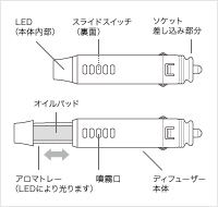 ●エッセンシャルオイル、アロマオイル以外はご使用にならないでください。 本体の変形・変質・故障を招くだけでなく、人体へ悪影響を及ぼす恐れもあります。